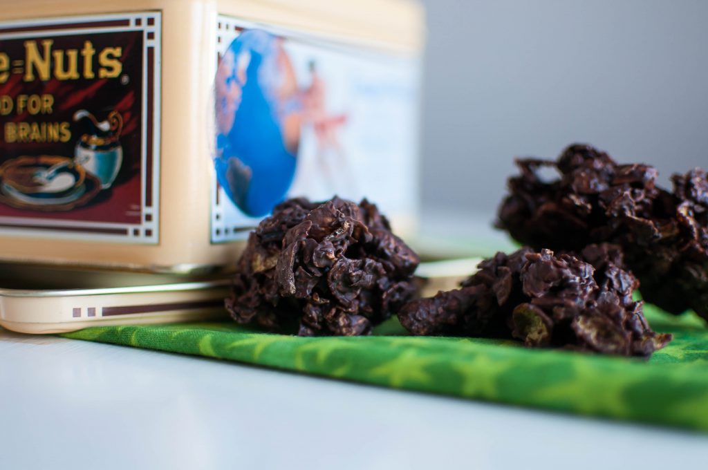 - Using two spoons, drop mounds onto parchment lined cookie sheets. Allow to cool and harden at room temperature. Store in an airtight container.
