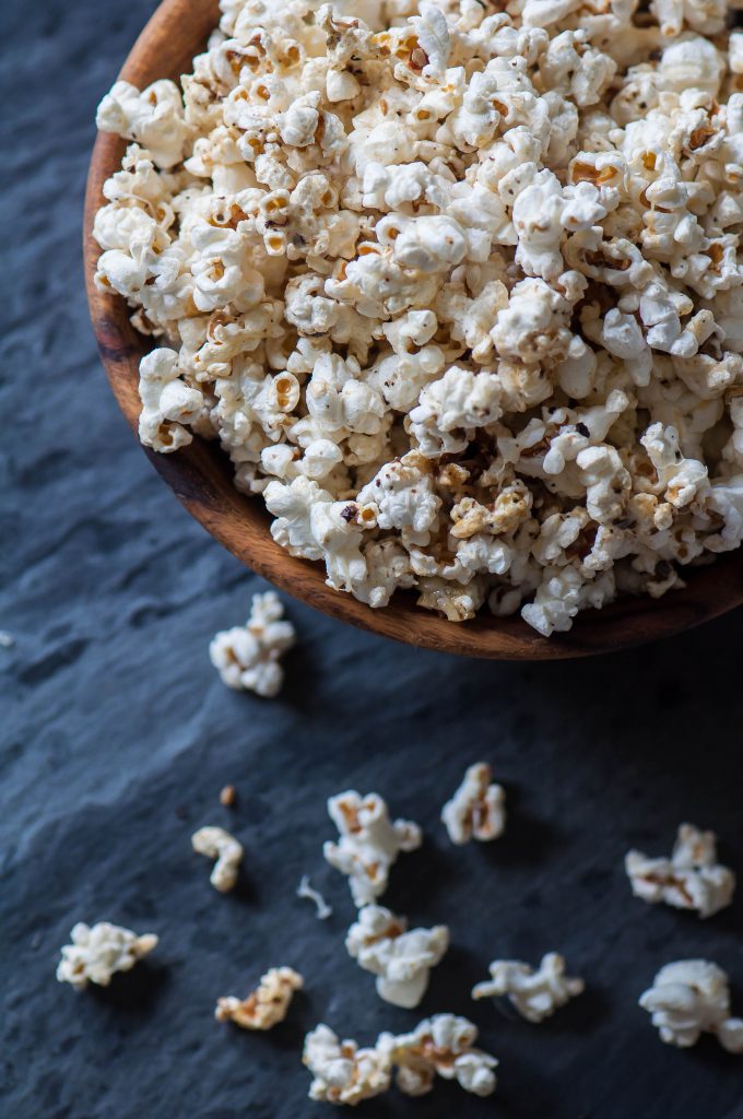 This popcorn is sharp and spicy. One tablespoon of fresh cracked pepper is tossed throughout the popcorn so it has a strong, spicy bite to it almost to the point of punching you in the face. Like I said, we like a good amount of black pepper on pretty much anything we eat (with the exception of Joel) so we thought it was perfect (even the two year old) but if you don’t like it as powerful, half the amount.