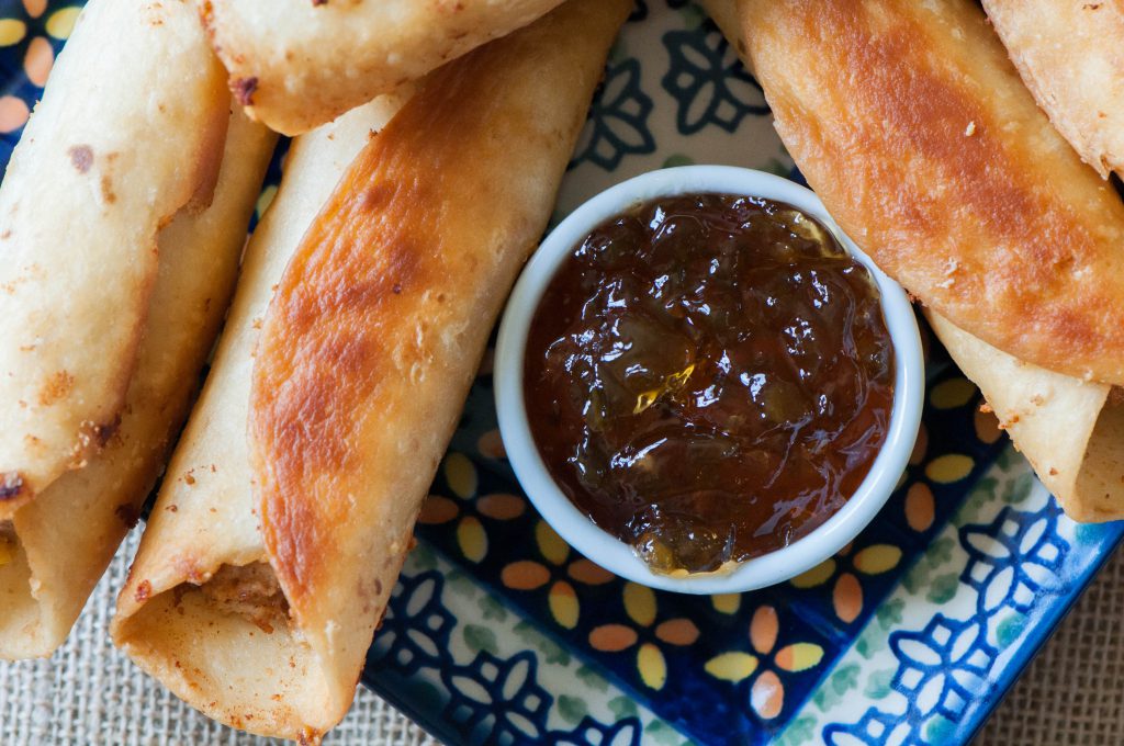 A new place opened in town recently and we have become addicted to their Crispy Chicken Flautas that they serve with jalapeno jelly.