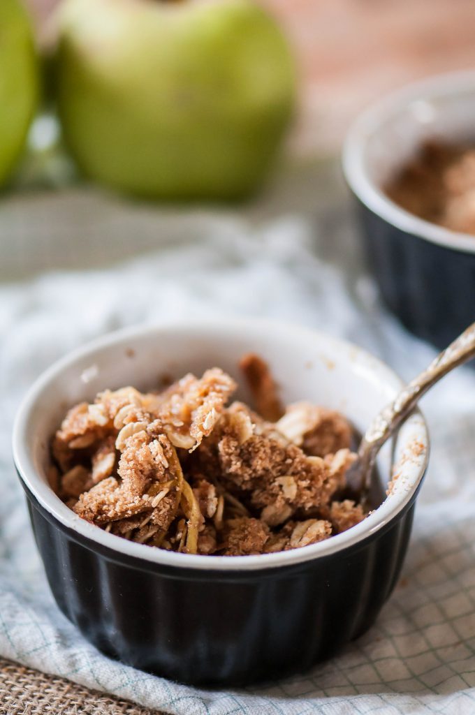 Sure, everybody loves a big pan of apple crisp but wouldn’t it be even better if you have your own cute mini serving with all the crispy edges that you vie for in the original? I thought so.