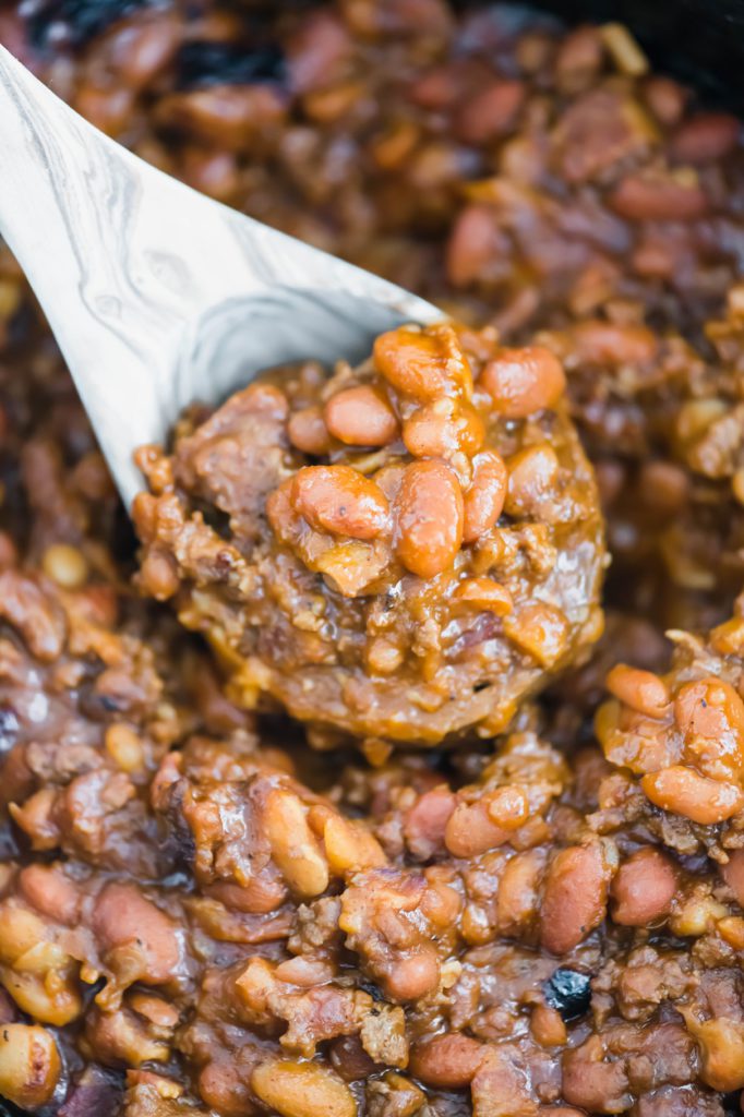 Basically, we have a trio of beans combined with ground beef, bacon and a delicious barbecue-esque sauce. The combination of sweet and smoky ingredients creates so much delicious flavor.